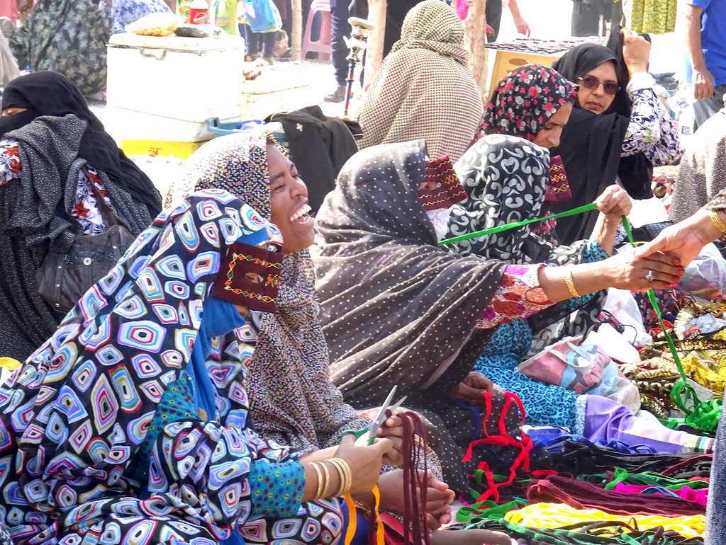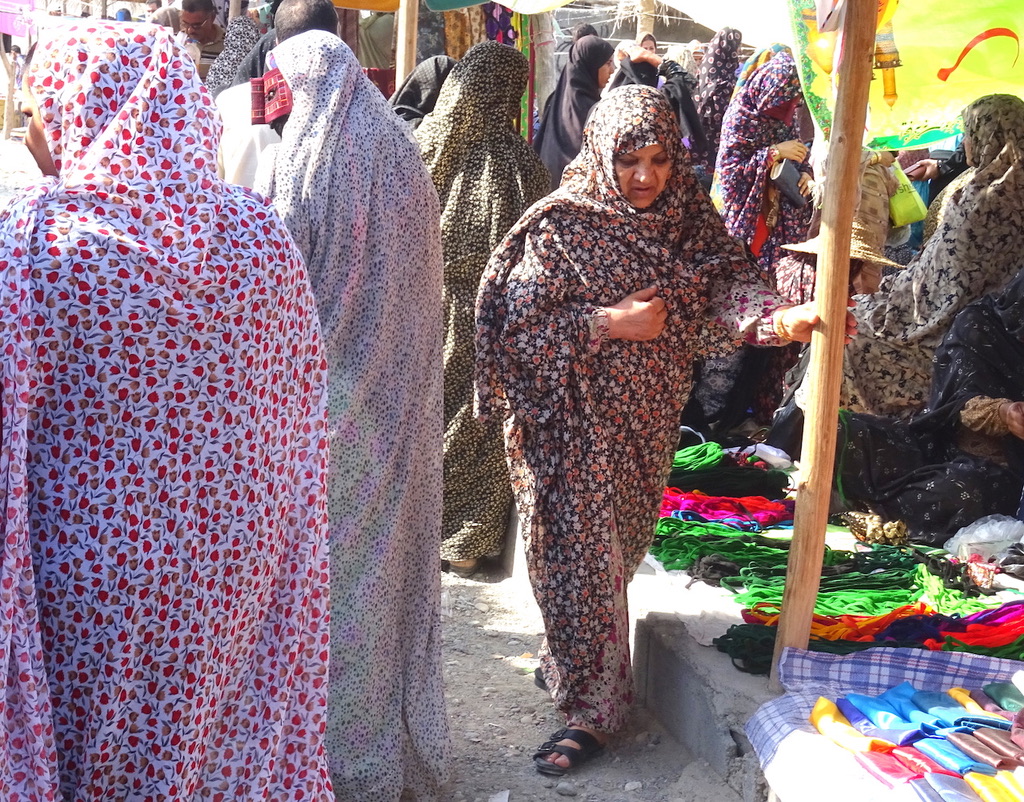 In the back of our truck a group of Bandari (port) ladies huddled together to keep warm. I could just make out curious eyes peering through boregheh, elaborate face masks worn by the women of the Gulf region. Despite these conservative coverings, Bandari clothes are bright and elaborately decorated, flowery saree style dresses draped over richly embroidered leggings. Some say their masks originated from the Portuguese settlers whose women used them as protection from the harsh climate. Others say the local women wanted to hide themselves from slave masters looking for wives.