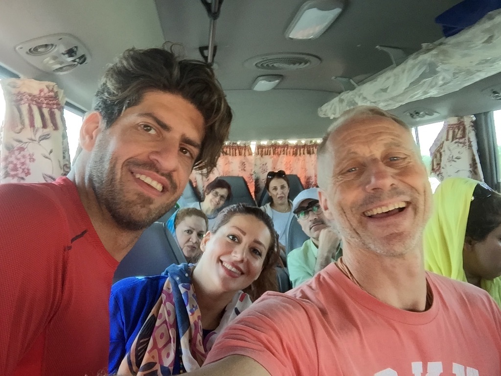 Before finally making it to the islands an unmissable opportunity presented itself. The flexibility of our schedule – coupled with the famous Persian hospitality – landed us in a minivan with 16 holidaying Tehrani ladies! Iranian tour groups are legendary (I’d read hilarious accounts of their antics in the wonderful ‘Land of the Turquoise Mountains’ book) and I found myself squeezed in a van between an Islamic scholar and a car factory owner. Among the group were also visiting Iranian ex-pats from Australia and the UK. Most of the women favoured a practical approach to the Islamic dress code – tour company baseball caps, sun visors and trainers. Many were divorcees (Iran’s divorce rate is around 25%) enjoying their new-found freedom. Hadi, the local Tour Leader, may have been a little scant on information – but he was big on entertainment! Everyone revealed their occupation, marital status and the last book they read. After playfully checking with our Islamic scholar, singing and dancing was officially approved – and the fun commenced.