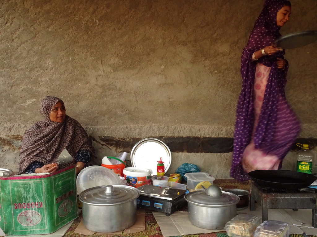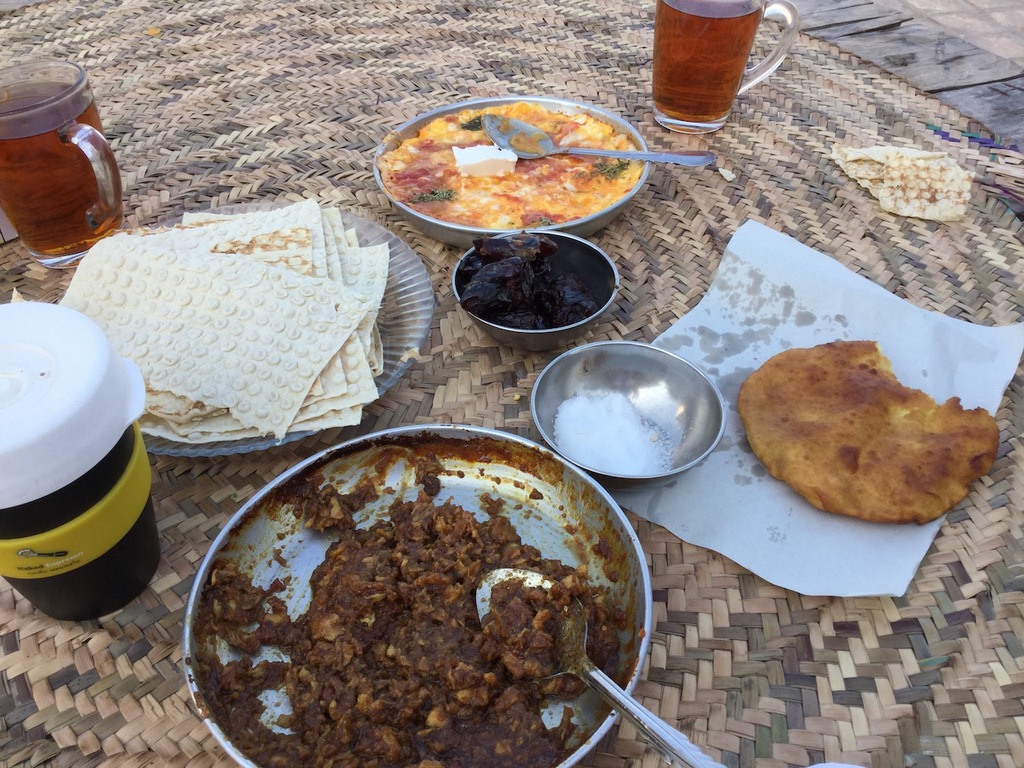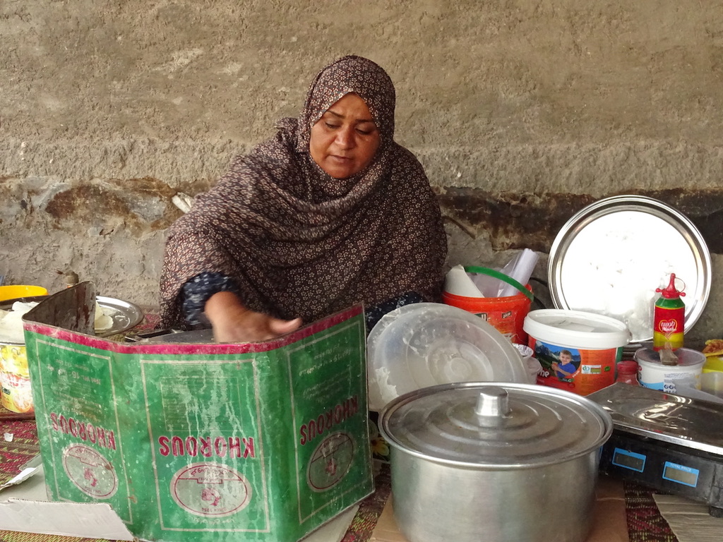 On the island’s pavements, women huddle around blackened pans and small stoves making wafer thin ‘Tamoushi’ bread. Dough is spread thinly and smothered with egg or creamy cheese before local sauces are drizzled on top, giving the breads their unique taste. Mahyaveh is made from fermented sardines, salt, mustard, coriander, and fennel. Hormuz Islanders top their bread with Souragh sauce, which uses the edible red soil of the rainbow island as a spice! This unique sauce is prepared by marinating sardines in sour orange peel, then leaving the mix in the sun for a couple of days. Afterwards the sauce is blended it with spices and cooked to sweeten the sauce. Fresh from the pan, these breads made with cheese, egg (or both!) and topped with the tangy sauces were the perfect way to start our island days.