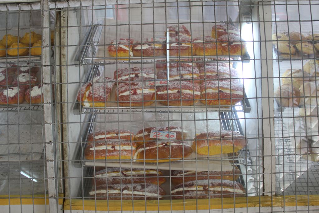 As a slice of ‘rattle and hum’ pizza doesn’t cut it for me, I venture out to find ‘local’ food. In pidgen English worried security guards ask where I’m going – ‘to meet the people’ of course! The street talks louder than books; ignorant avoidance and alienation only breeds anger and resentment. The dusty stares are immediately broken once I crack a smile. Betel nut sellers, sitting beneath umbrellas angled to ward off the burning sun, encourage their infants to say hello. They will need to sell 60 betel nuts for a slice of that Rattle n’ Hum pizza. Outside the barred liquor store my hand is shaken repeatedly, and people beg me for a snappy (photo). Next to the liquor shed is the ‘Kai’ bar – where lucky locals get eat out. But there’s no fresh woked vegetables, no noodle soup or rice porridge. Rice, the staple of any developing nation’s diet, is a relatively expensive import – in a land of rich volcanic soil and a green (rainy) season. On offer (behind bars) at the kai bar are deep fried root vegetables, and (for the lucky) battered spam and disturbingly bright savaloys.