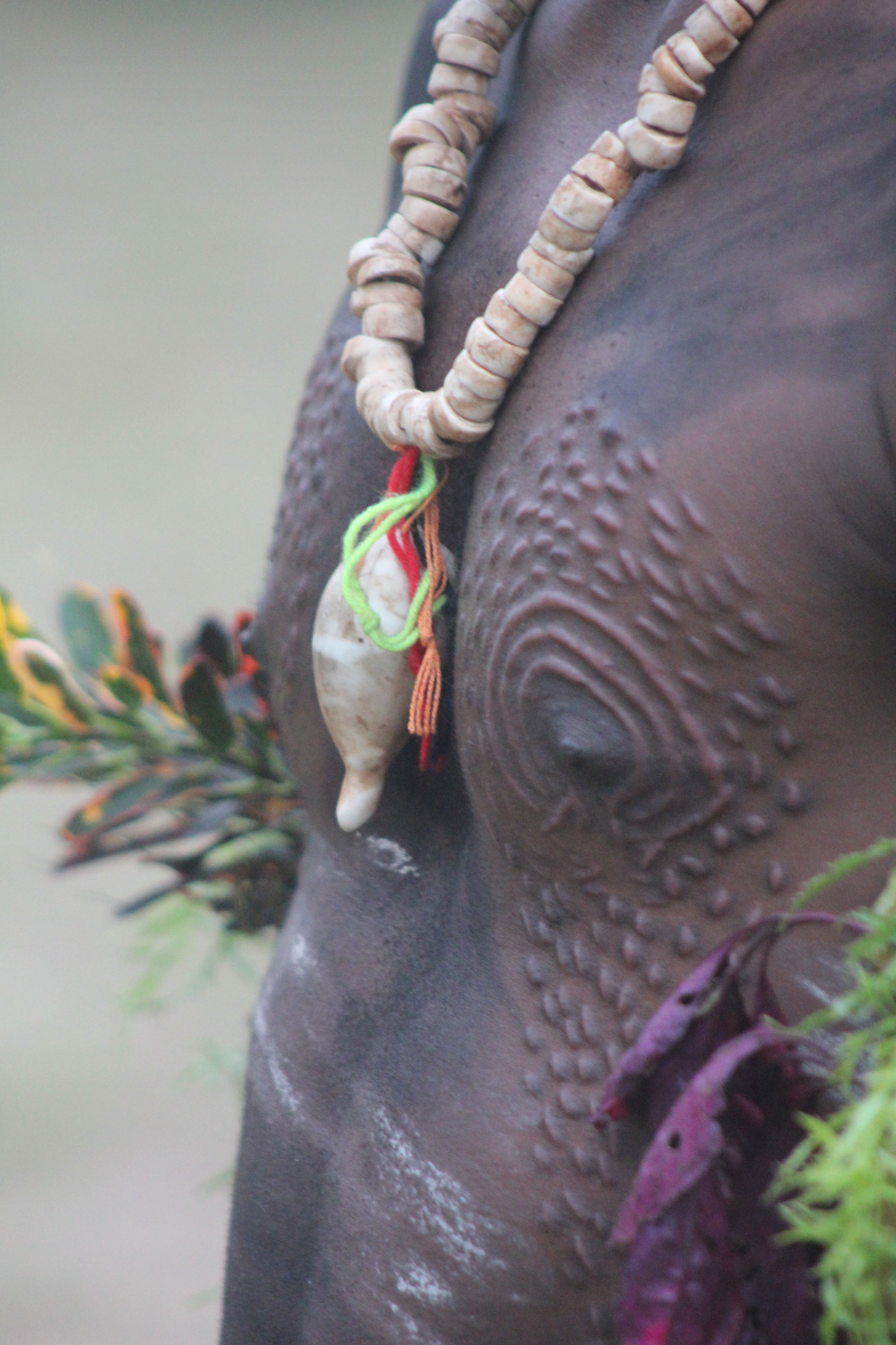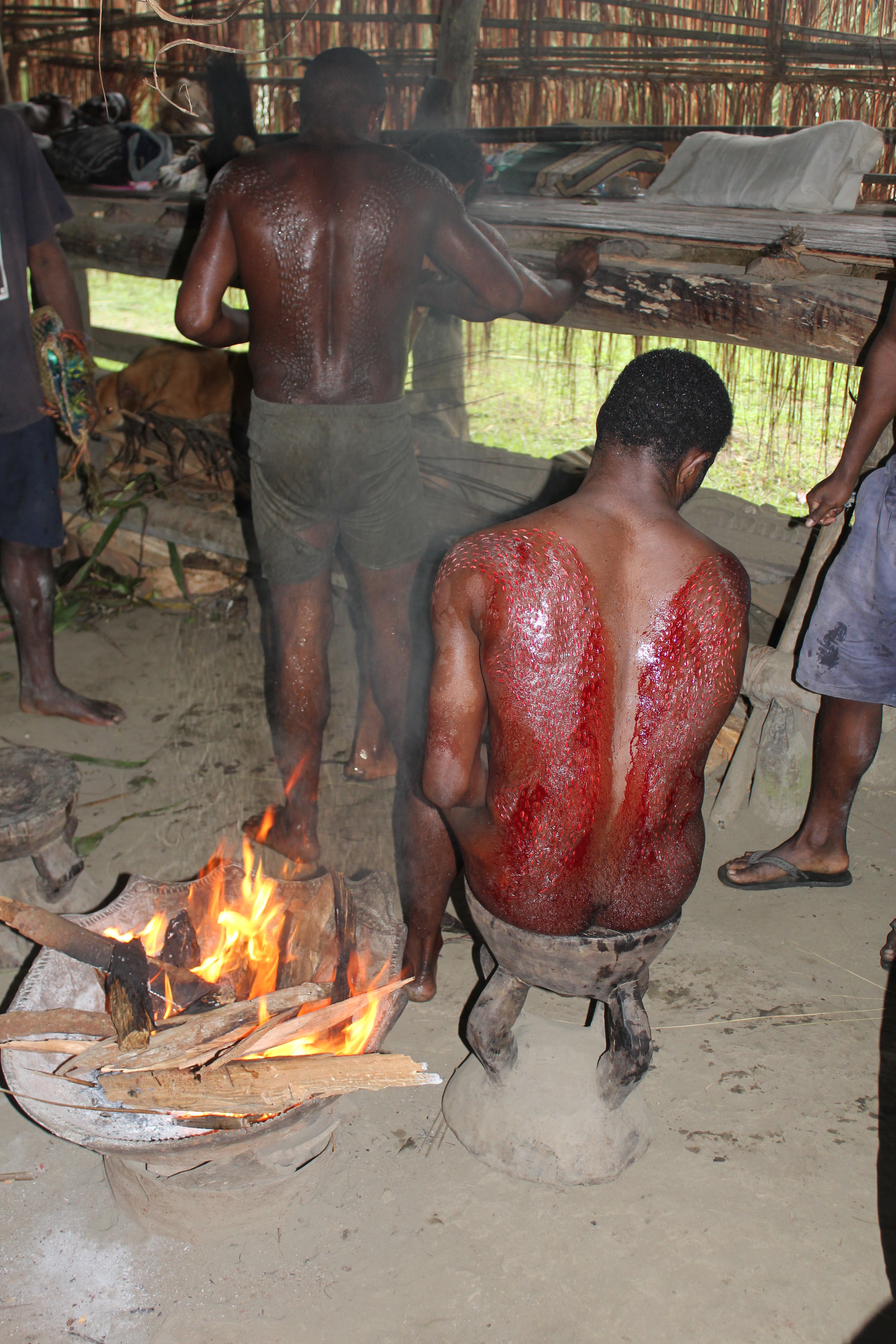 The screams still haunt me… Apocalyptic flashbacks to the jungle of Papua New Guinea where scarlet trickles of blood run down the backs of five freshly carved initiates. The pulsating sound of village drums as our canoes pull up on the shore, beside the spirit house. Outside a human representation of the crocodile, a dozen men richly decorated in foliage twist and turn to the hypnotic beat. Those young men’s screams as the brown waters of the mighty Sepik drench the freshly exposed pink flesh. These wounds will be deliberately prevented from healing to create the welted skin effect, the scars of your initiation into the ancient crocodile cult. The young men will now spend weeks or months beside the fire in the spirit house, being taught the skills of manhood by village elders, already rich in crocodile decoration.
