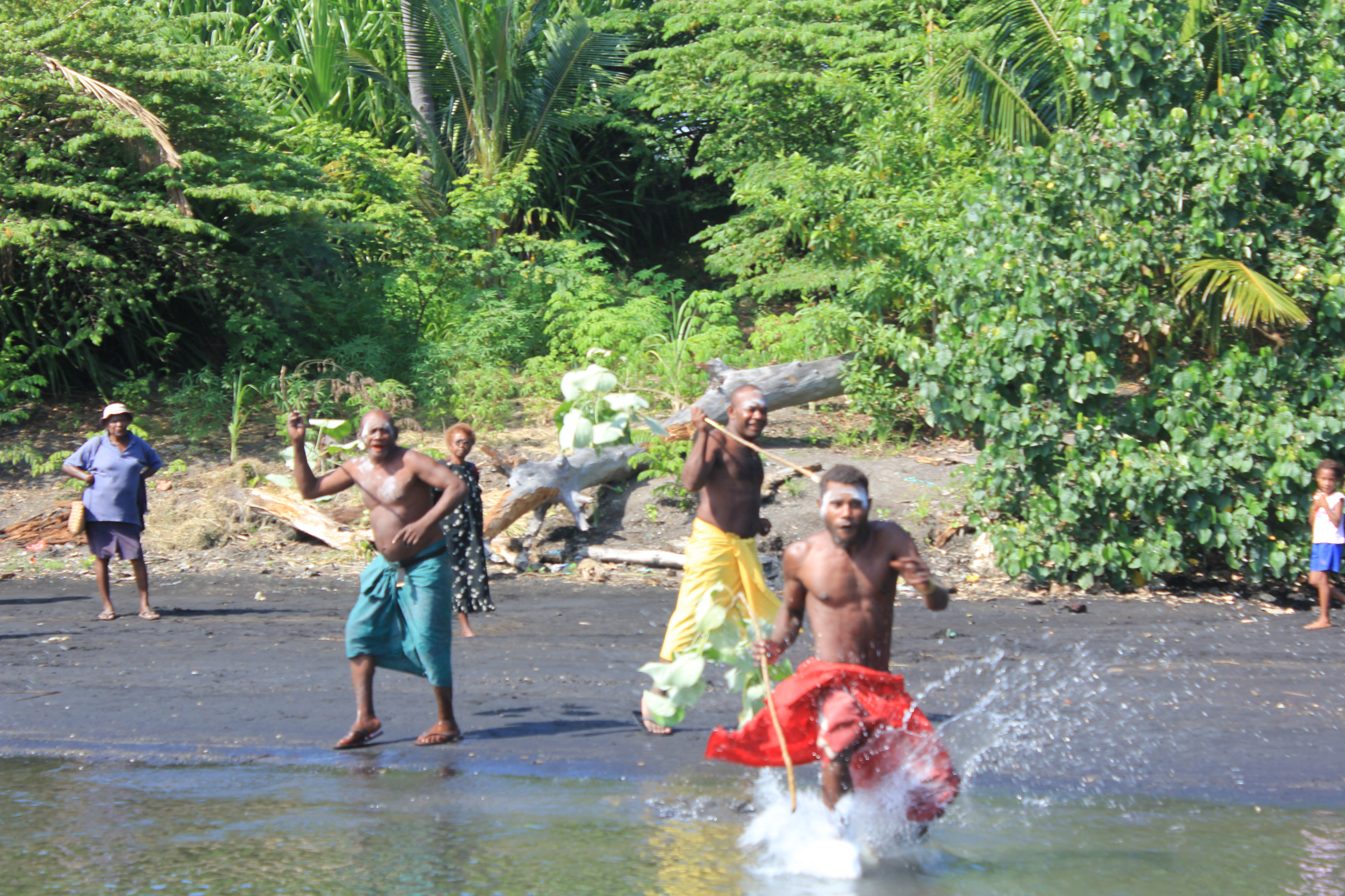 We meandered along the islands dirt paths through a blanket of giggling school children, some with striking blonde hair bleached by the sun and sea. The islands’ women demonstrated their crafts, before the inevitable PNG tradition of a ‘sing sing; men, women and children performed colourful dances as Tavurver smoked menacingly in the distance beyond the graveyard. The islanders tell us that they are not concerned though; they appease the volcano with adoration and respect.