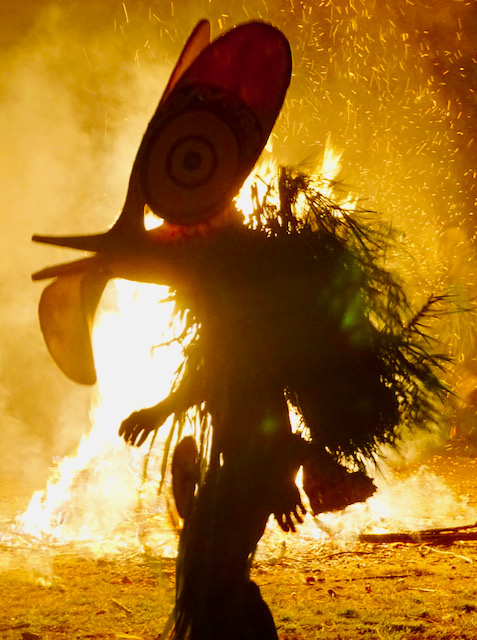 An hour drive up into the darkness of the mountains set the scene for this last, nocturnal, spectacle. Flames flickering against a black sky dotted with stars marked our arrival at the village. Pulsating rhythms of bamboo pipes and drums intensified, as menfolk and their boys gathered in a circle ready for the tribal ritual. As the beats reached a crescendo the first giant mask appeared, and performers were slowly lured from the forest to the edge of the fire. As villagers enthusiastically thrust industrial quantities of wood into the flames, the dancers hypnotically span around, before either leaping through the fire or kicking flaming wood from it.