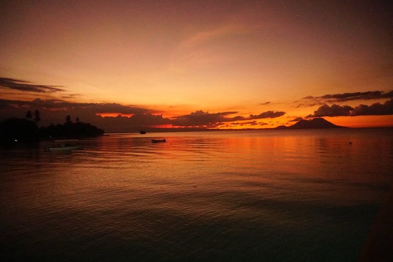 An oceanside dinner watching the sun set spectacularly over the harbour would have been a fitting way to end our time in East New Britain – but we still had one more highlight to witness; a Fire Dance by the Baining people.