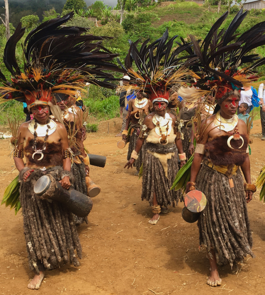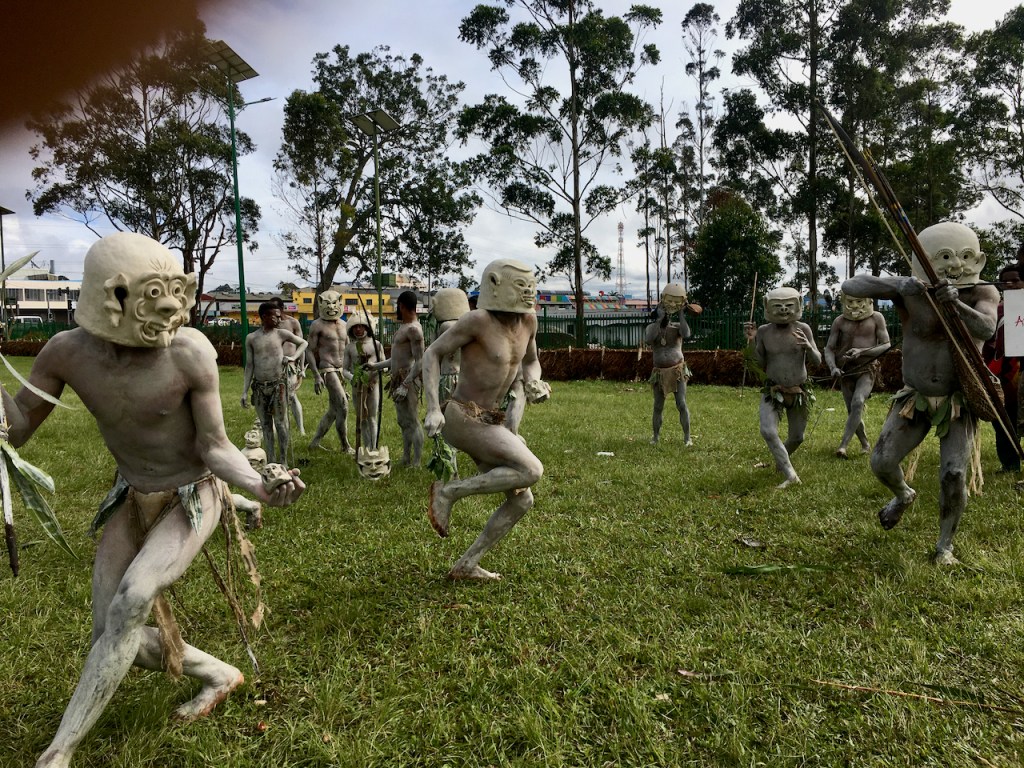 PNG’s is one of the planets most culturally diverse places, with over 1000 different ethnic groups speaking 800 plus languages. Many of these groups develop their own traditional ‘sing-sing’ – a hypnotic rhythm of chants, drums and percussion to mark special occasions or tell a creation story. For example the clay masked Asaro Mudmen were forced to flee their land by a rival tribe, so they regrouped, covered themselves in mud from the Asaro River, shaped horned clay masks and returned to frighten their invaders back to the hills. They are always a show highlight, smothered in white clay and moving eerily slow and silently – aside from the metallic clicking of their long claws.